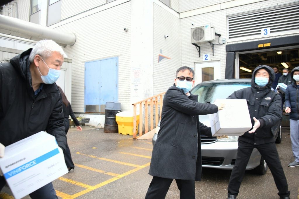 3月23日下午1点,在柯议员推荐下,联盟小组将采购收到的20000只医用Nitrile手套和1500件隔离服共80箱医用物资送到北约克综合医院,华人同乡总会执行主席朱江也参加了这次医用物资护送行动,虽然是非常时期,院方还是派医院相关负责人Bessy Leung(Vice President, Chief Financial Officer)亲自接待了捐赠者,代表院方感谢华人社区的慷慨捐助,感谢给他们送来医院急需的医用物资。