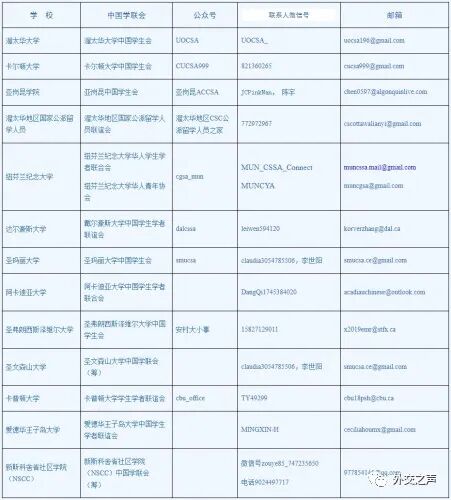 附:驻加拿大使馆领区部分高校中国学联会联系方式