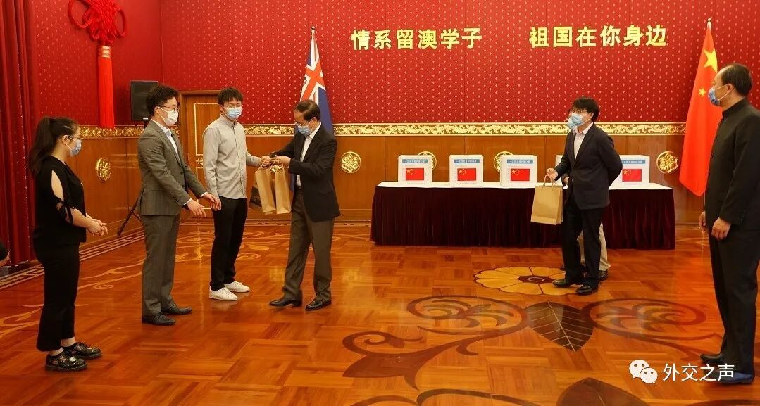3月27日下午,驻澳使馆举办“情系留澳学子 祖国在你身边”留学生应急防护物资“健康包”发放仪式。成竞业大使现场向澳首都地区学联代表、公派生代表和小留学生代表赠送了“健康包”,并视频连线北领地查尔斯达尔文大学孔院负责人和留学生代表,对他们的健康和防疫情况表示关心和慰问。