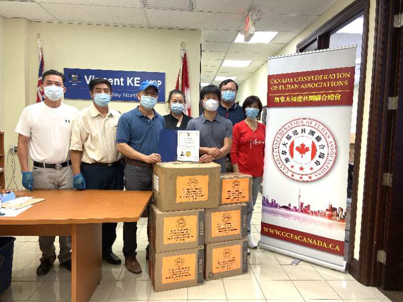 加拿大福建社团联合总会一直关注疫情,加拿大作为我们的居住国,在这关键时刻,总会发起捐款,不到两周的时间,就将捐款采购了合格的医疗物资,通过加拿大三级政要牵线搭桥捐赠给有需要的医疗机构及公共服务部门,用实际行动支持坚守在一线抗击疫情的英雄们!
