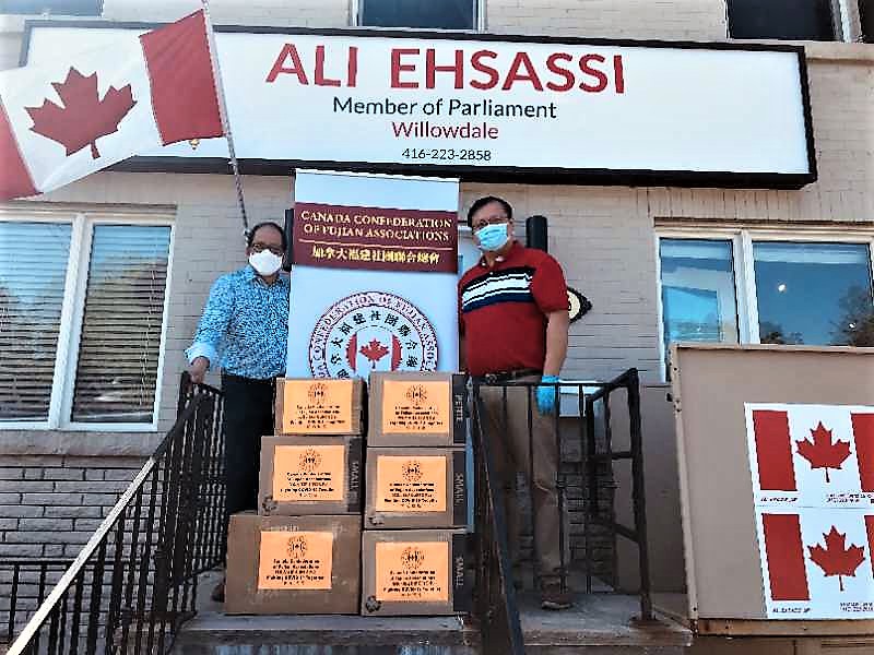 艾萨西国会议员将加拿大福建社团联合总会捐助物资分成多份