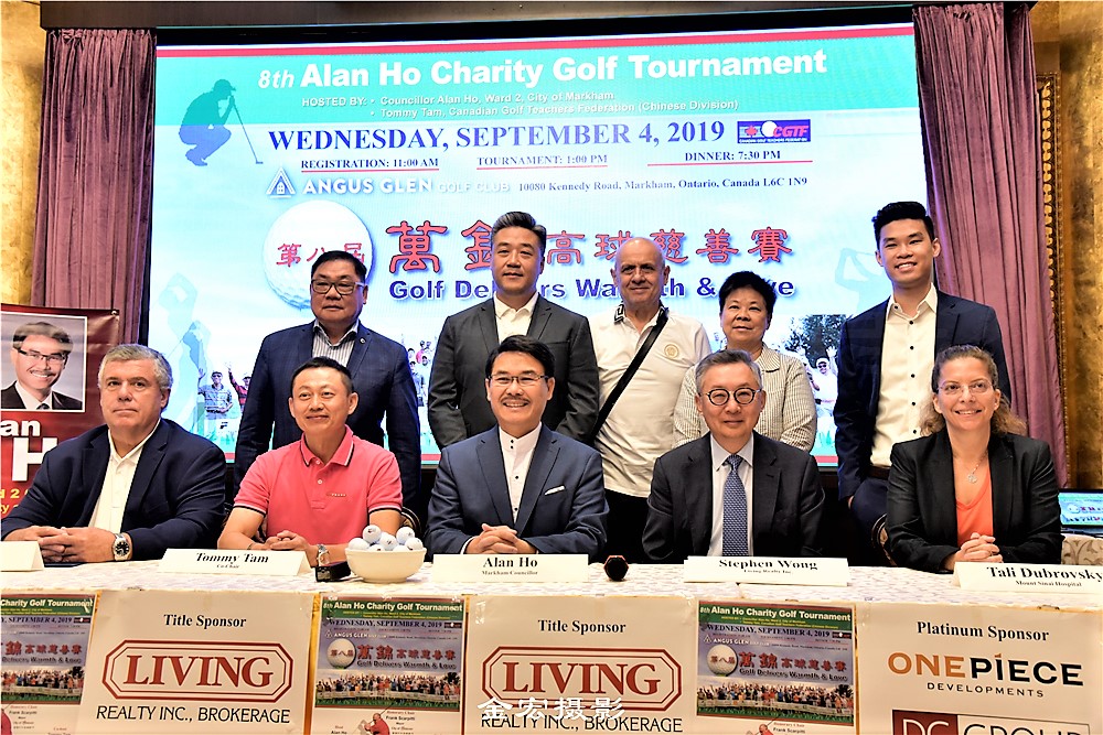 【金宏/王澜图文视频报道】2019年8月8日,万锦市市议员何胡景(Councillor Alan Ho)之2019 第8 屆【万锦高球送温暖】慈善高球赛记者招待会在万锦紫爵金宴举行。
