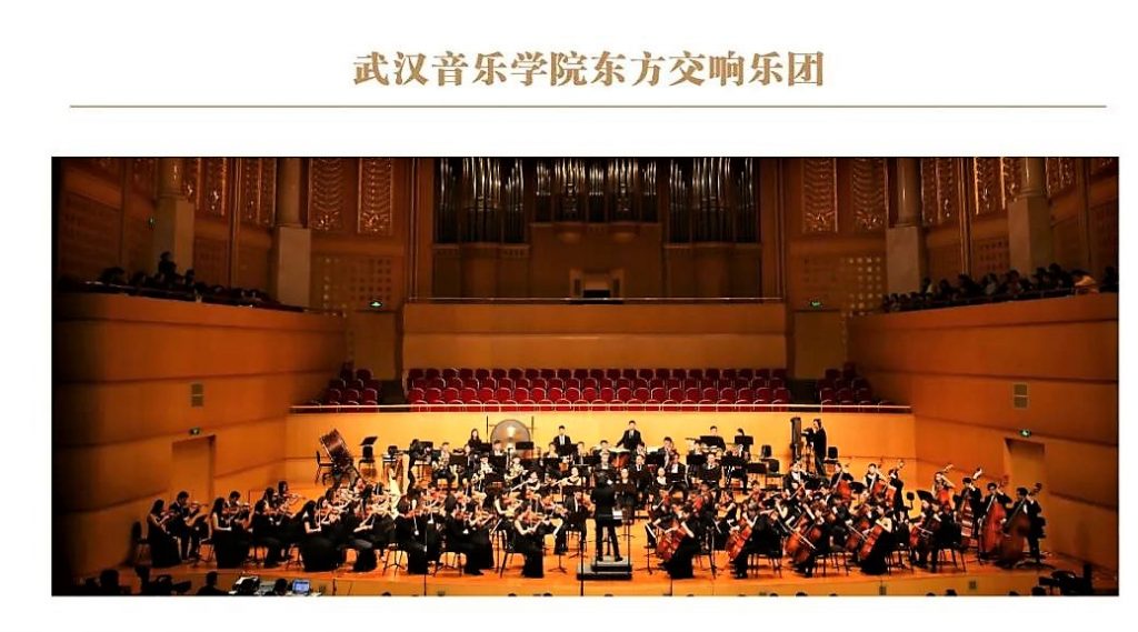 11月11日(星期三)晚7:30,由中共武汉市委、武汉市人民政府主办,由武汉音乐学院校友、著名作曲家邹野、方石等担纲主创,武汉音乐学院东方交响乐团、武汉音乐学院演艺学院合唱团与武汉音乐学院特聘教授、湖北省人民政府“楚天学者计划”特聘教授、著名指挥家彭家鹏,著名歌唱家贺磊明等联袂演出,并特别邀请华中科技大学附属同济医院医护工作者合唱团、武汉市公安局武昌分局警官合唱团、武汉市武昌区黄鹤楼街社区工作者合唱团联合参演的 第九届琴台音乐节 “我爱你,中国”武汉音乐学院抗疫主题交响合唱音乐会将在武汉市 琴台音乐厅上演。