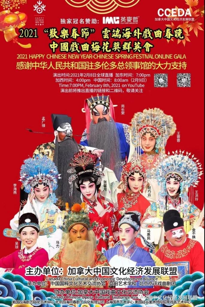 由加拿大中国文化经济发展联盟主办 、中国国粹文化艺术交流协会承办 、南京英麦哲文 化产业发展有限公司独家冠名赞助的“金牛迎春”2021 年“欢乐春节”云端海外戏曲春晚-中 国戏剧梅花奖群英会, 节目异彩纷呈,精彩无限,令观众目不暇接,流连忘返,是一台高质量 、高水 准 、制作精良 、传统性和艺术性都很强的海外云端戏曲晚会精品,获得社会广泛好评。