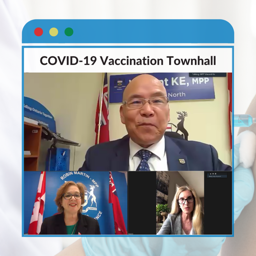 2021年5月6日,星期四,安省Don Valley North 省议员柯文彬举行线上会议,围绕疫苗接种实施计划预约流程及其注意事项展开讨论。