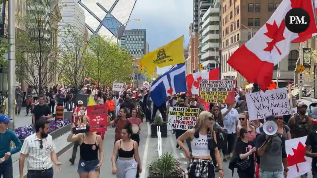 今天中午, 在加拿大最大的城市多伦多市中心再次出现了反对政府疫情封锁的游行示威。