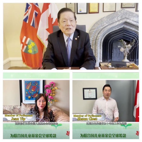特邀嘉宾 加拿大联合国儿童基金会高级发展官(Senior Development Officer of UNICEF Canada) Joon Oh 加拿大联邦参议员 (Senator of Canada) 胡子修 (Hon. Victor Oh) 万锦-康山联邦国会议员 (MP for Markham-Thornhill),小企业、出口促进及国际贸易部长(Minister of Small Business, Export Promotion and International Trade) 伍凤仪(Hon. Mary Ng) 世嘉宝-爱静阁联邦国会议员 (MP for Scarborough-Agincourt) 叶嘉丽 (Jean Yip) 北世嘉宝联邦国会议员 (MP for Scarborough North) 陈圣源 (Shaun Chen) 列治文山省议员 (MPP Richmond Hill) 韦邱佩芳 (Daisy Wai) 当谷北省议员 (MPP Don Valley North) 柯文斌 (Vincent Ke) 多伦多市市长 (Mayor of Toronto) 庄德利 (John Tory) 万锦市市长 (Mayor of Markham) 薛家平 (Frank Scarpitti) 奥克维尔市市长 (Mayor of Oakville) 罗布·伯顿 (Rob Burton) 皮克灵市市长 (Mayor of Pickering) 戴夫·瑞安 (Dave Ryan) 皮克灵市副市长 (Deputy Mayor of Pickering) 大卫·皮科尔斯 (David Pickles) 万锦市第二区议员 (Ward 2 Councillor of Markham) 何胡景 (Alan Ho) 万锦市第六区议员 (Ward 6 Councillor of Markham) 杨绮清 (Amanda Yeung Collucci) 万锦市第八区议员 (Ward 8 Councillor of Markham) 李诗韵 (Isa Lee) 列治文山第六区议员 (Ward 6 Councillor of Richmond Hill) 陈志辉 (Godwin Chan) 旺市第四区议员 (Ward 4 Councillor of Vaughan) 杨士渟 (Sandra Yeung Racco)