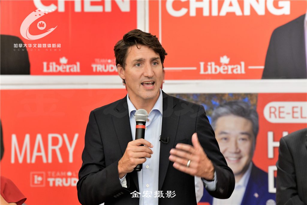 9月17日晚,加拿大自由党领袖特鲁多在大多地区列治文山市聚龙轩酒家,与当地华人共同庆贺即将到来的中华传统节日——中秋节。