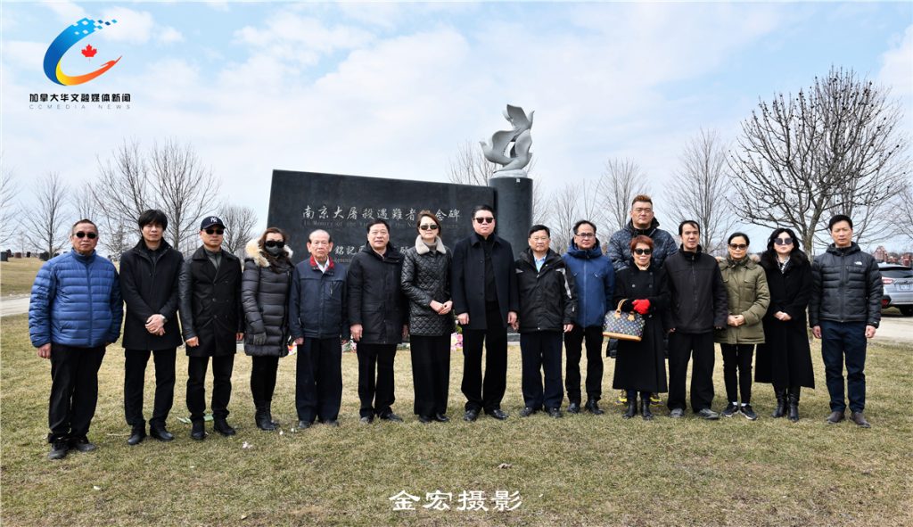 正午12时, 多伦多华人团体联合总会和多伦多洪门民治党的部分成员,来到位于列治文山市爱恩墓园内的【南京大屠杀遇难者纪念碑】前,敬献花圈、默哀鞠躬、追思祭拜。