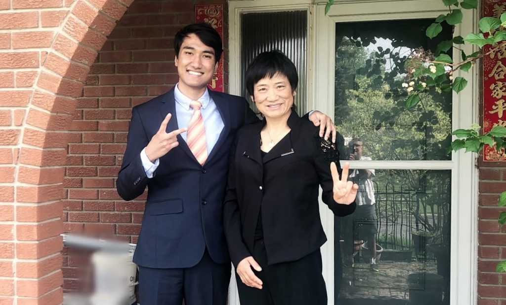 作为他的母亲,一 个移居加拿大26年的华人,看到自己的儿子,能踊跃参政,并积极 、勇敢地参加本次省府议员大选, 我感到由衷的高兴。