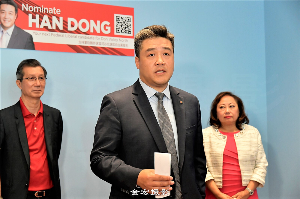 董晗鹏在新闻发布会上表示:“如今,当河谷北选区在渥太华需要⼀个强而有力的代表,能正视并解决社 区民众最关注的问题。我在政策拟定和解决民生问题方面有丰富的经验,更取得了丰硕的 成果。在和家人和朋友商榷之后,今天我向大家宣布参选党内提名的决定。”