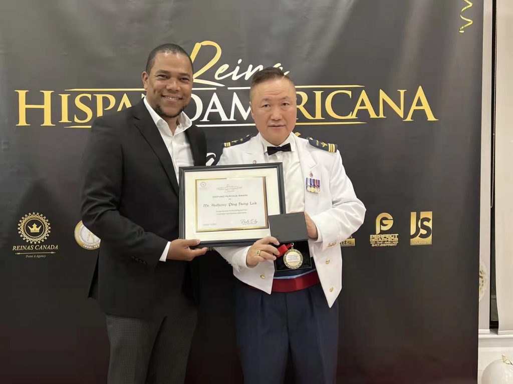 今天晚上,在新动力企业家俱乐部与哥伦比亚驻多伦多领事舘举办的【2022加拿大西语社区-北美女王加冕礼】活动中,多伦多市长候选人陆炳雄荣获哥伦比亚总领事Jorge DiazBravd颁发的【哥伦比亚友谊勋章】。