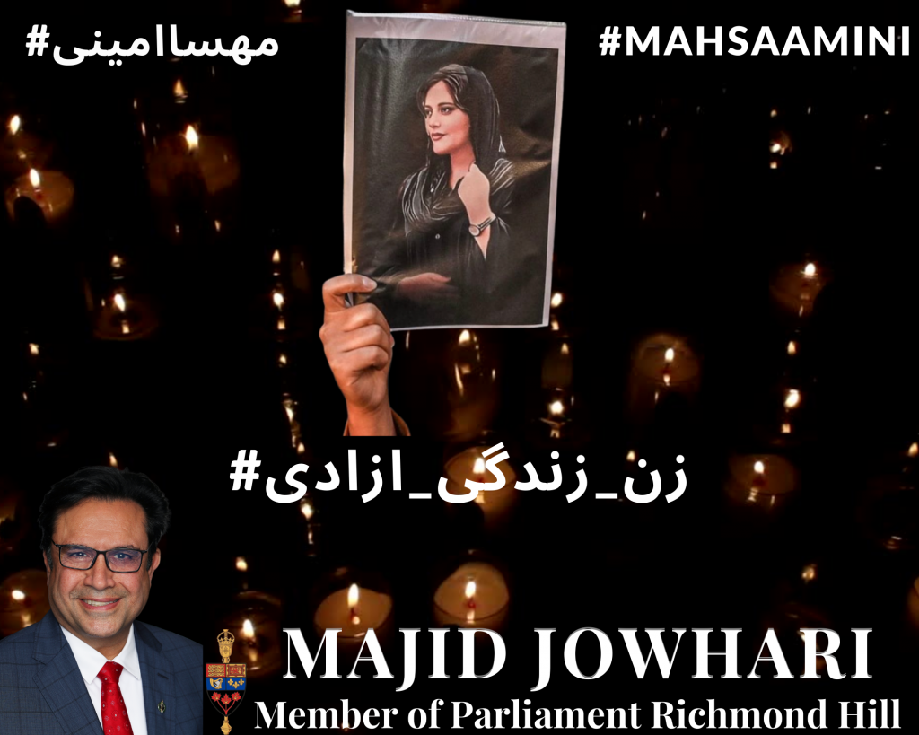 我,里士满山国会议员马吉德·乔哈里(Majid Jowhari)和我们的政府将继续扩大勇敢的伊朗男人、女人和青年的声音,因为他们为自由和基本人权而战,反对残暴的政权,我们将继续使用我们掌握的所有工具来打击伊朗政权的滔天罪行。