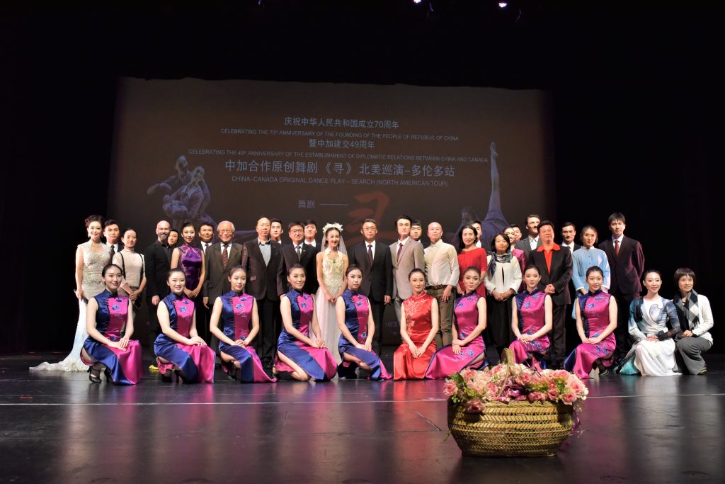 演出前举行了舞剧《寻》北美巡演多伦多站演出开幕式。中华人民共和国驻多伦多总领馆韩涛总领事、江苏省文联副主席、江苏省舞蹈家协会主席刘仲宝先生、无锡市歌舞剧院(江苏民族舞剧院)副院长厉以俐女士、加拿大促进国家统一协会会长陈丙丁律师、渥太华华星艺术团张志刚团长、舞剧《寻》导演、加拿大著名舞蹈编导和艺术总监 Peter Quanz 、加拿大无锡商会沈浩会长、金鼎置业 Michael Yuan 总裁、多伦多华星艺术团陈功团长和张红副团长分别上台致辞,向在加所有华人侨胞们致以衷心的祝福,并对此次舞剧《寻》北美巡演的重大意义给予了高度肯定,对活动主办方、协办方的努力和付出,及赞助商的大力支持表示了由衷的感谢。希望中加艺术团体以弘扬中华传统文化,促进中加友谊和世界文化交流为己任,继续加强中加合作,创编出更多更好的作品,今后再多举办一些富有影响力的文化艺术交流活动,努力为海外广大喜爱中国传统文化艺术的各界人士构建一个多彩多姿的交流平台与连接纽带,从而进一步推动中加文化交流和融合。祝愿伟大的祖国更加繁荣昌盛,希望中加友谊牢不可破、地久天长。开幕式由 Lucy Li 担任主持。