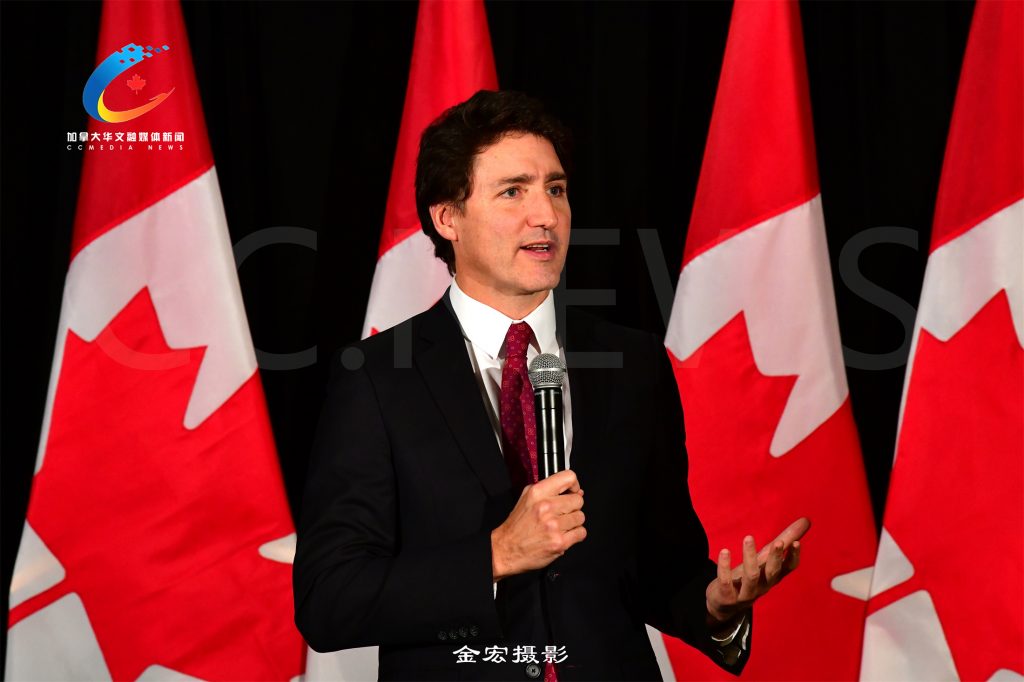 今天晚上, 加拿大联邦总理特鲁多在北约克泛太平洋酒店向众多支持者发表讲话。