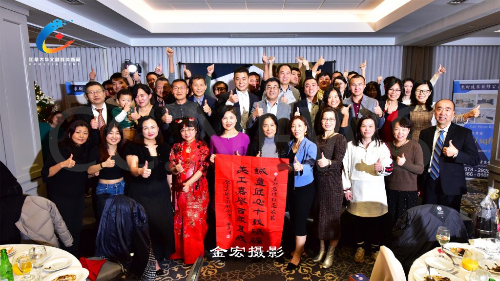 加拿大陕西同乡会周志军会长致贺词并向东财装修建筑赠送祝贺墨宝