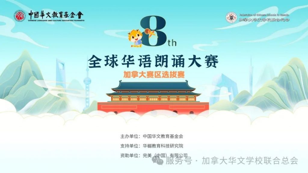 加拿大华文学校联合总会荣幸继续担任本次大赛加拿大赛区的承办单位。我们衷心感谢中国驻加拿大大使馆和蒙特利尔总领事馆多年来对朗诵大赛的大力支持!诚邀加拿大境内各华文教育机构及相关团体积极参与,组织学生踊跃报名,共同推动华文教育的发展。