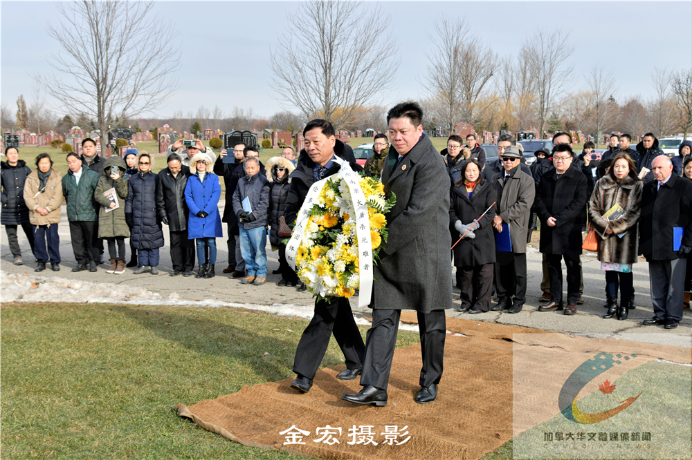 中国驻多伦多总领事馆政新组长赵巍领事和曹英培领事向南京大屠杀遇难者纪念碑敬献花圈