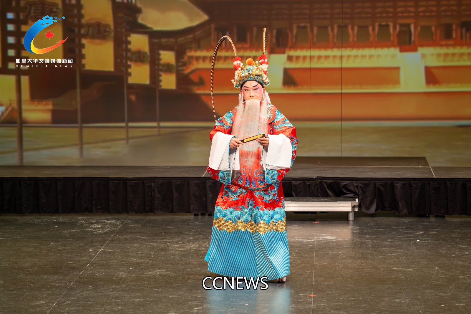 张旭东老师身着华丽戏服,以浑厚唱腔演绎经典选段的画面,眼神铿锵有力,举手投足间尽显国粹的深厚底蕴。
