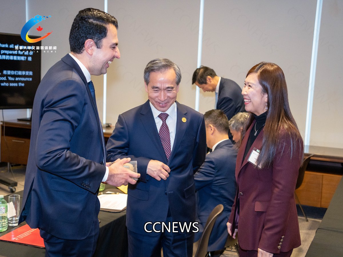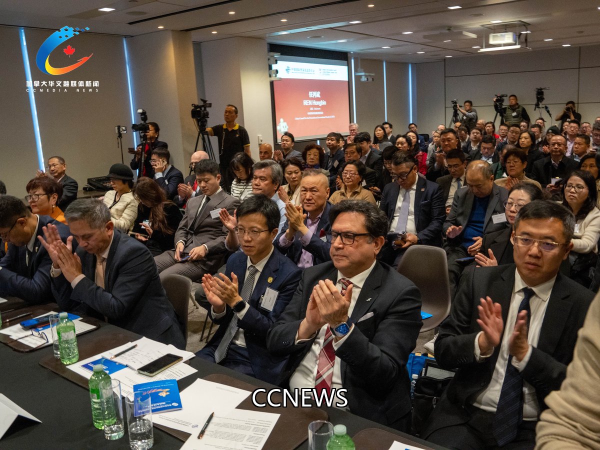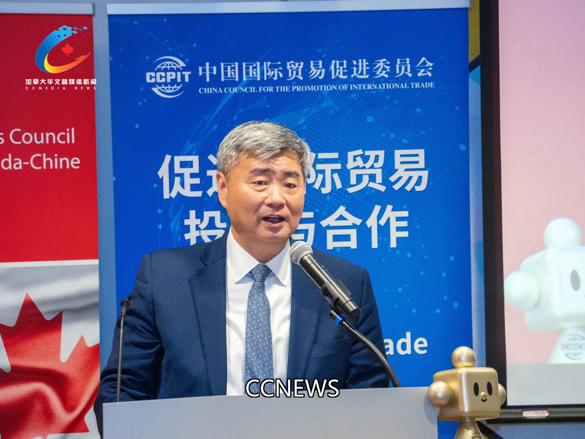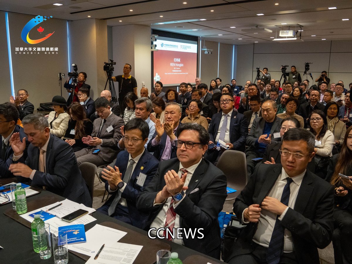 中国国际贸易促进委员会会长任鸿斌、中国驻多伦多总领馆总领事罗伟东、加中贸易理事会执行董事兼首席运营官安毕江(Bijan Ahmadi)、多伦多地区贸易委员会会长兼首席执行官格尔森等嘉宾出席论坛并发表致辞。