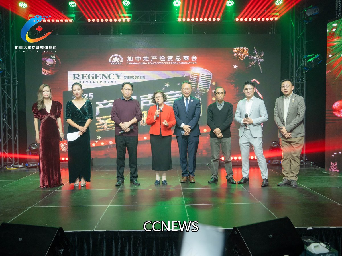2025年11月26日晚,加中地产投资总商会(CCRPA)在新动力传媒演播大厅成功举办了年度压轴盛典——“CCRPA 圣诞晚宴暨第五届地产好声音”。在璀璨灯光、节日氛围与热烈掌声中,超过300多名地产人士及各界嘉宾欢聚一堂,共同为2025年画下最温暖、最难忘的句号。