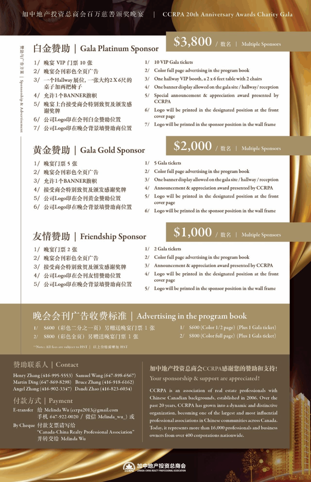 付款方式:e-transfer to Melinda Wu (ccrpa2013@gmail.com) 或请写支票给“Canada-China Realty Professional Association”