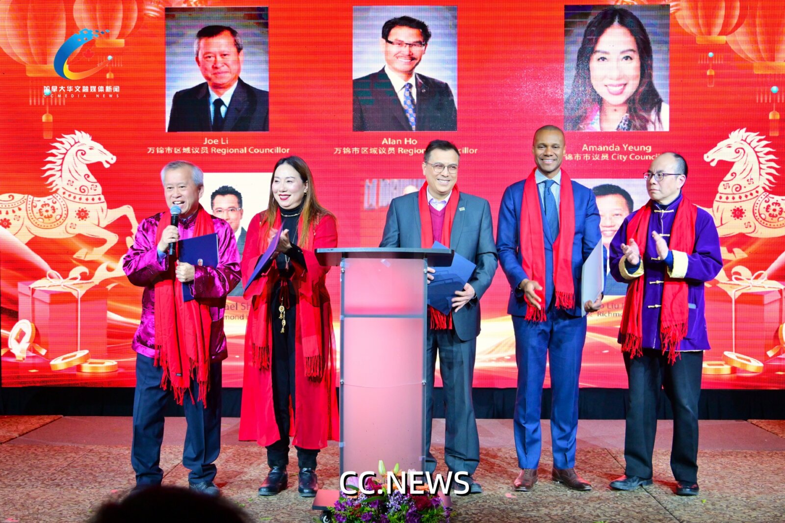多伦多市议员Jamaal Myers(麦智谋), 万锦市区域议员李国贤,议员杨綺清,列治文山市市议员邵浩然,约克区教育委员等分别致贺词