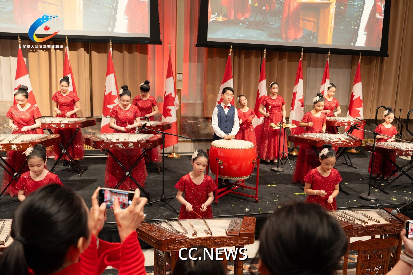 奥克维尔市华人少年乐队的杨琴合奏——他们是受本区国会议员兼外交部长的邀请前来表演