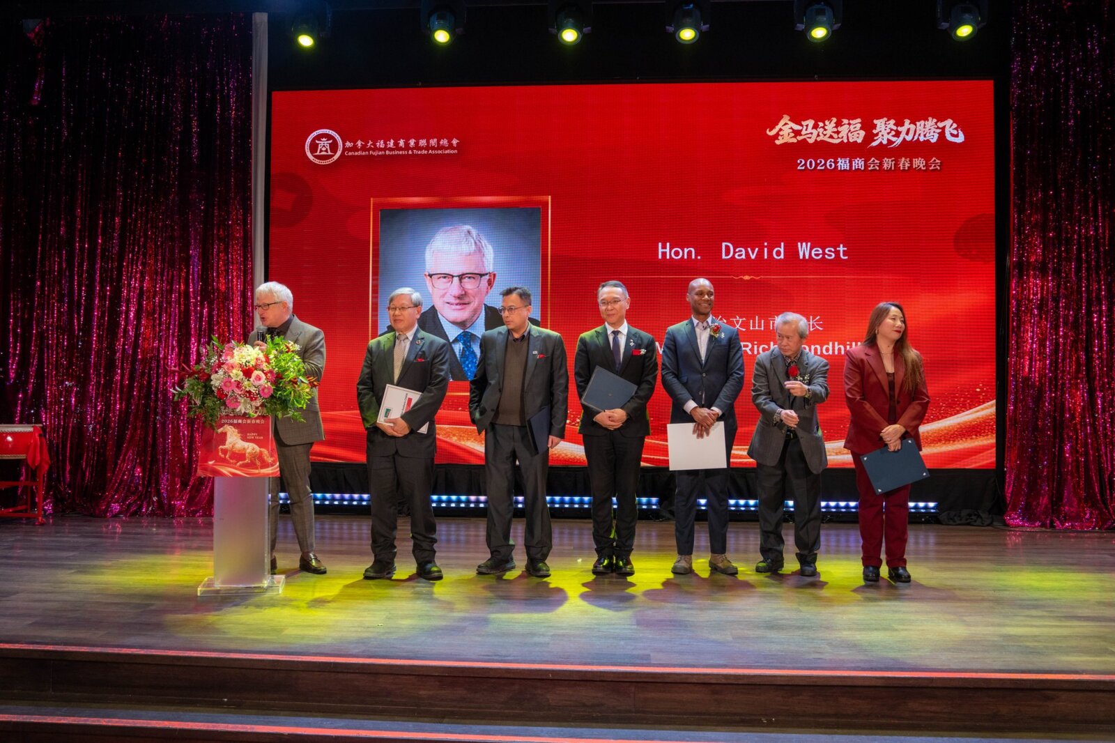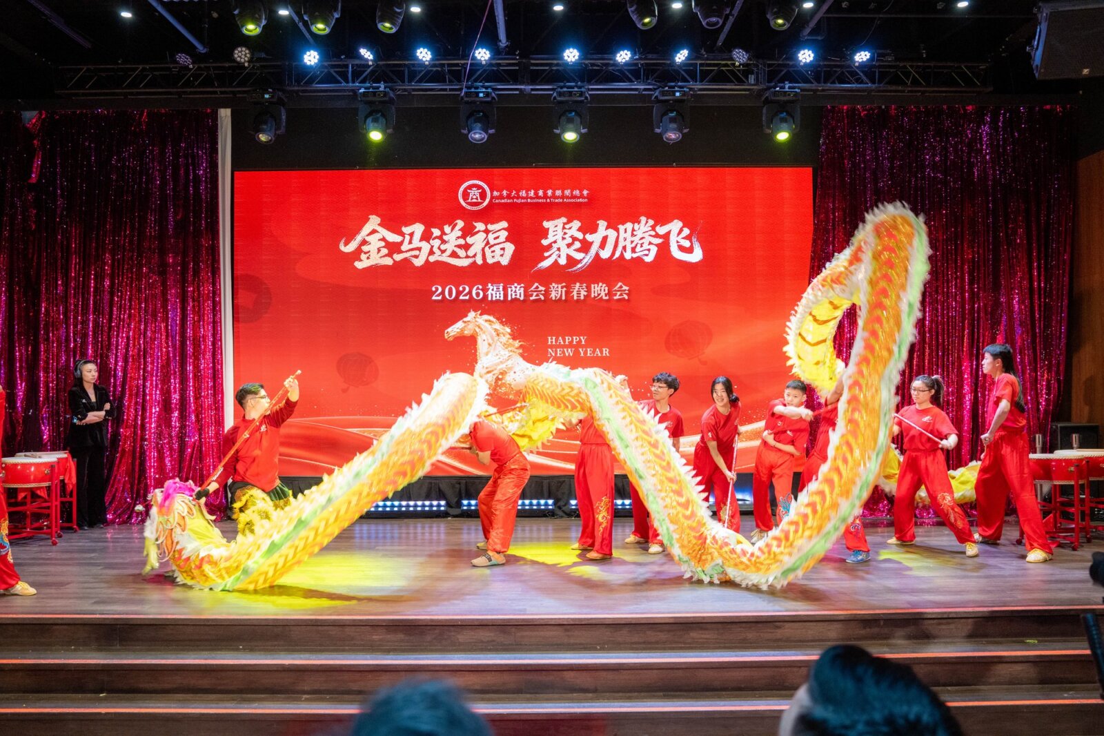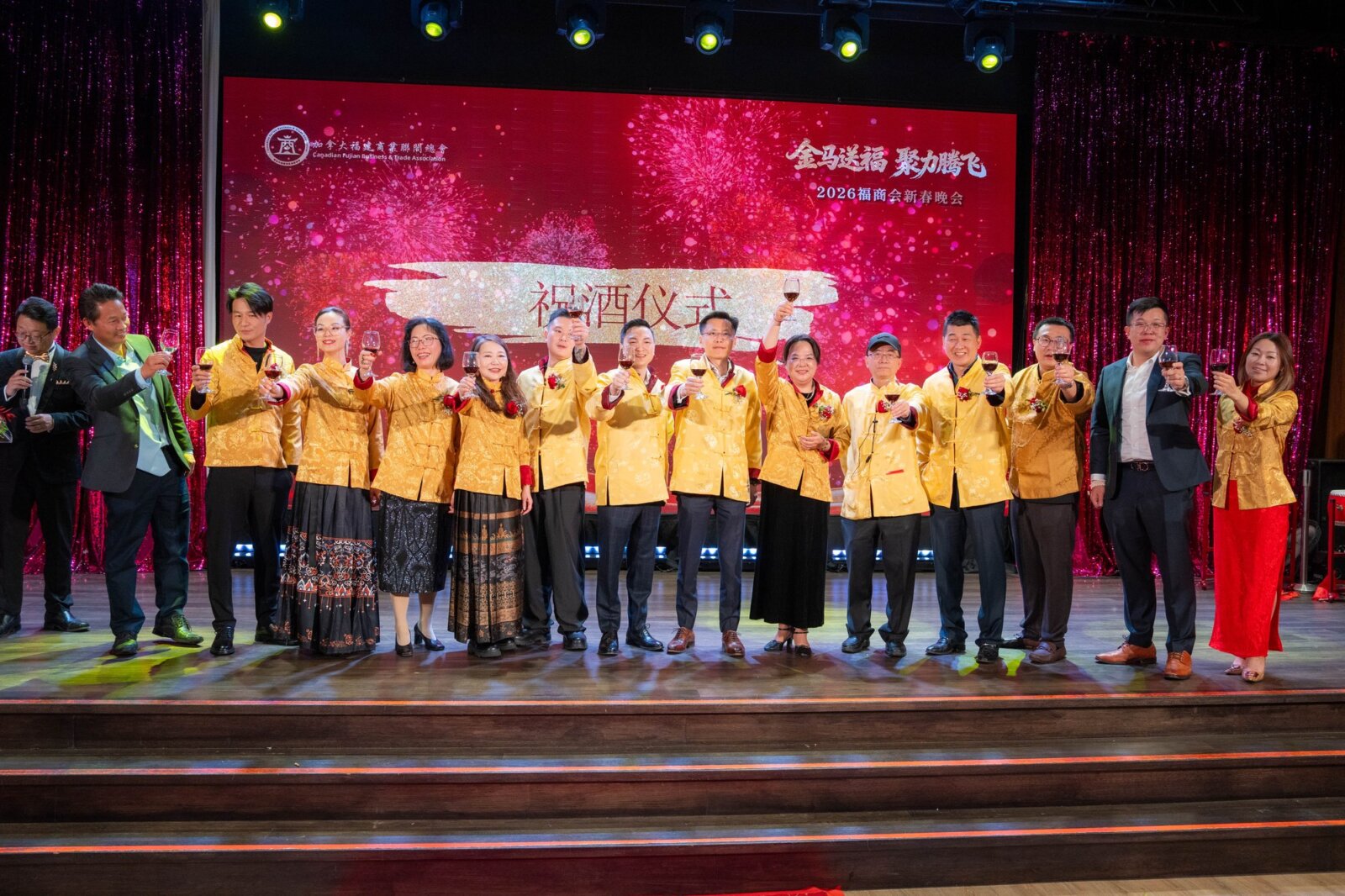 在辞旧迎新的美好时刻,加拿大福建商业联合总会(以下简称“福商会”)隆重举办以“金马送福·聚力腾飞”为主题的2026新春晚会。来自加拿大联邦、省、市三级政府官员,友好商会代表、社团精英及商界翘楚等近500位嘉宾齐聚一堂,共同迎接充满希望与活力的中国传统马年新春。