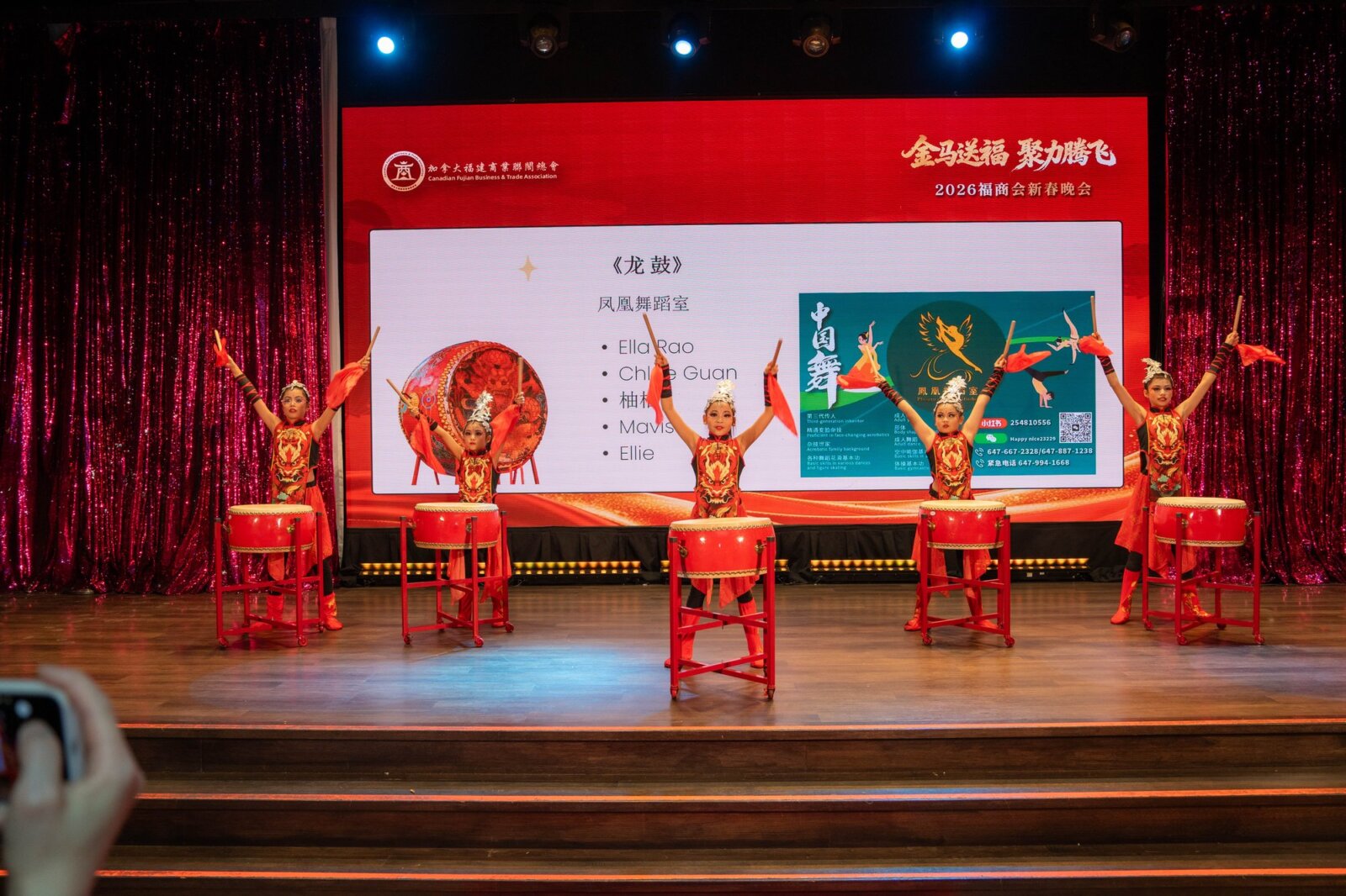 晚会在气势磅礴的舞龙舞狮表演中隆重开场,瞬间点燃现场气氛。随后,【凤凰舞蹈室】带来的龙鼓与变脸表演、加拿大文化产业发展协会呈现的舞蹈《Jump》(表演者 Joy 与 Alyson),以及北美超凡之星获奖青年歌手翁家昌 深情演唱的《身骑白马》,均赢得现场阵阵掌声。