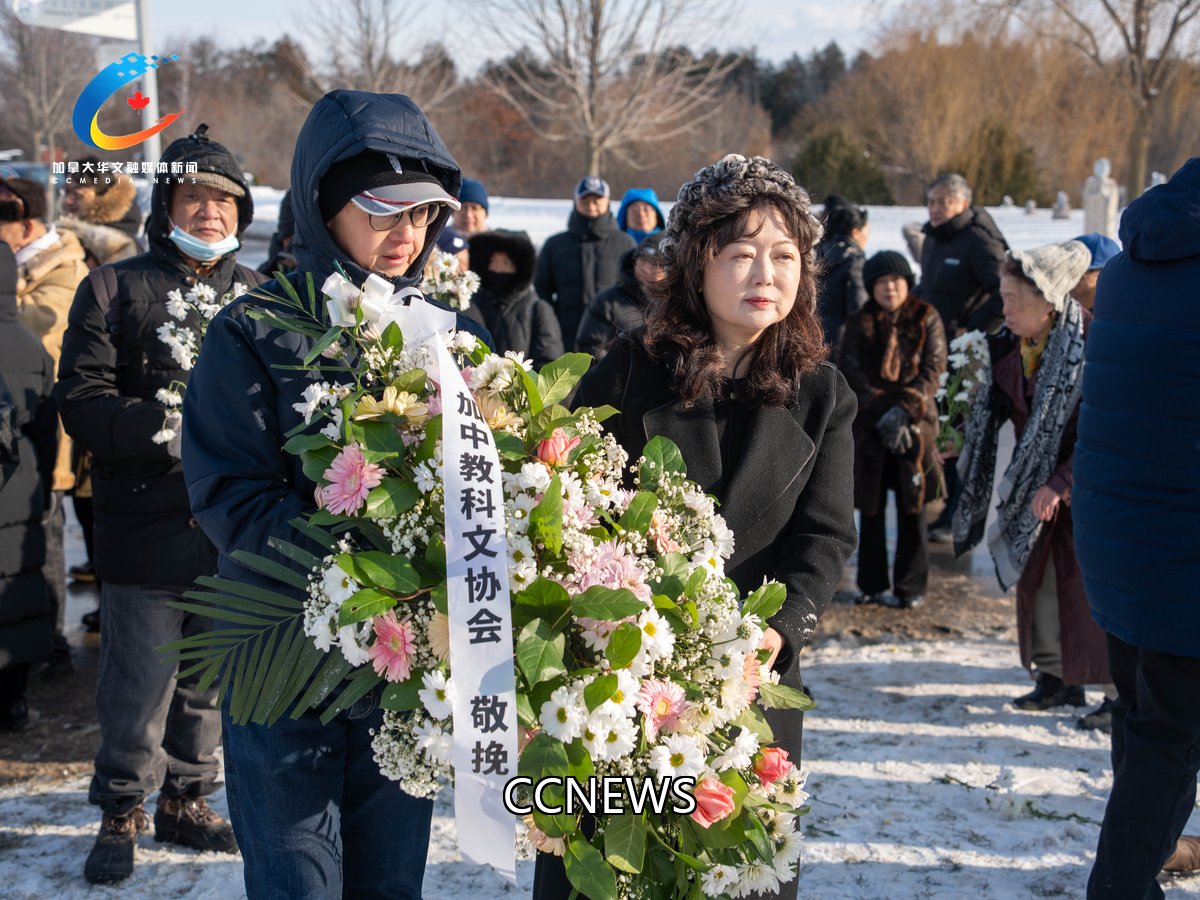 随后,来自大多伦多地区七十多家侨团和社区组织代表依次向纪念碑献花。