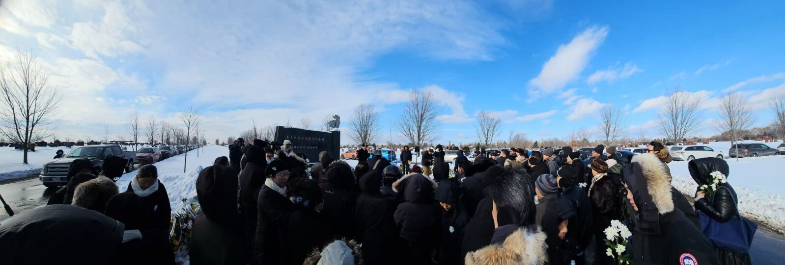 在南京大屠杀惨案发生88周年之际,今天上午,多伦多地区的华人华侨再次聚集在一起,于列治文山市爱恩墓园的南京大屠杀遇难者纪念碑前,举行了一场庄重而肃穆的公祭仪式。