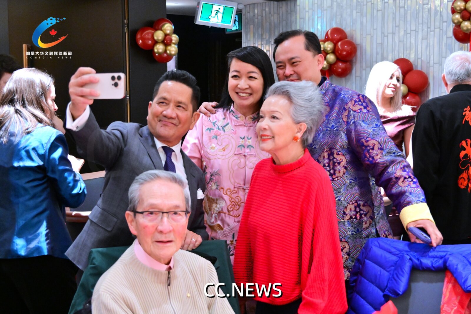 笔者注意到,德高望重的华人前参议员利德蕙(Vivien Poy)在招待会上备受崇敬,与会者竞相与她及家人合影