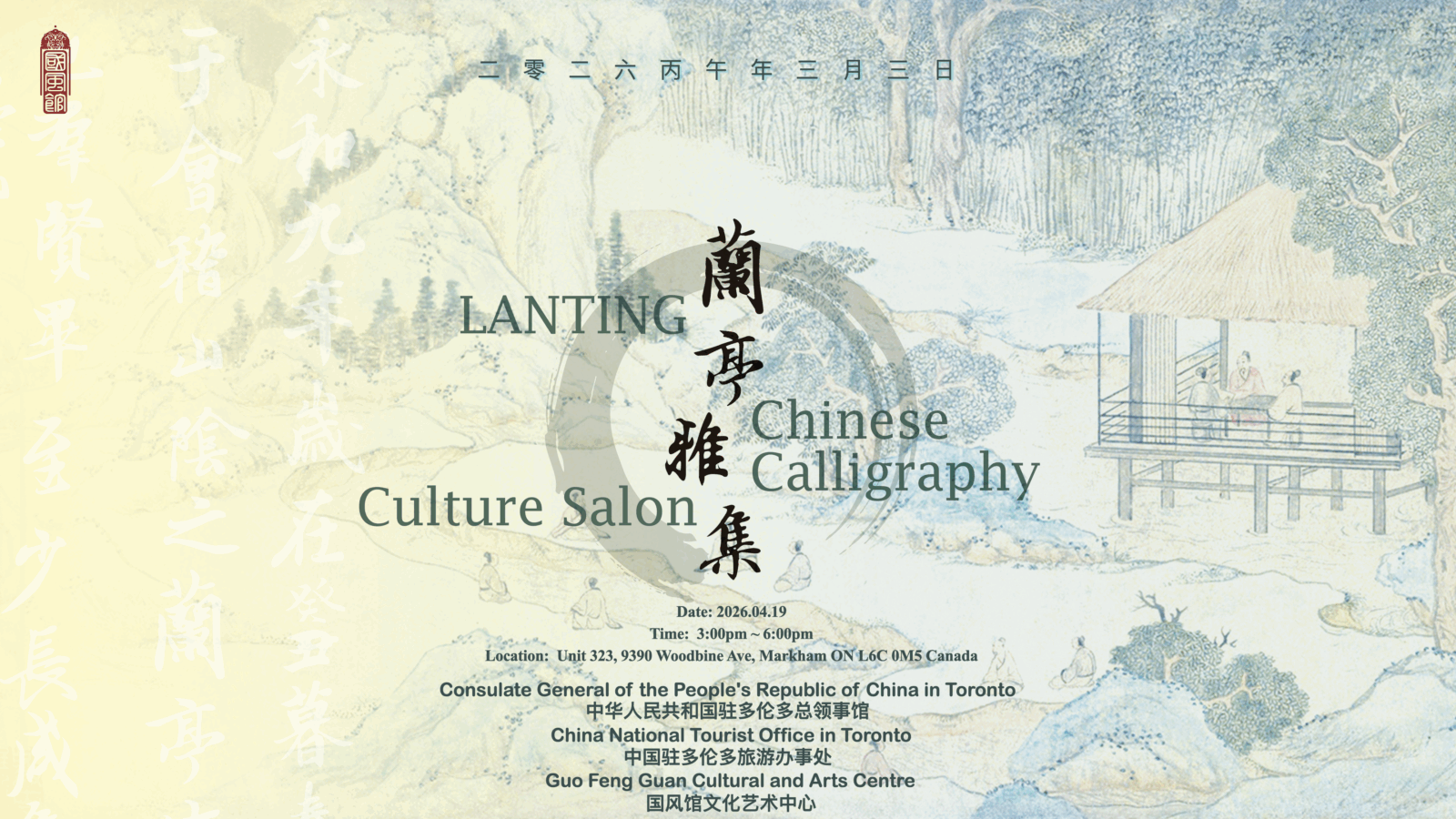 由中华人民共和国驻多伦多总领事馆、中国驻多伦多旅游办事处主办,国风馆文化艺术中心承办的首届“兰亭 · 雅集”书法笔会,于2026年4月19日在多伦多成功举办。