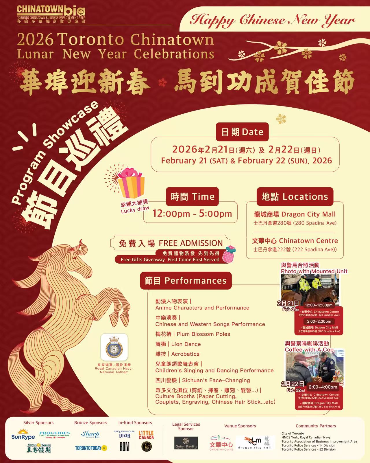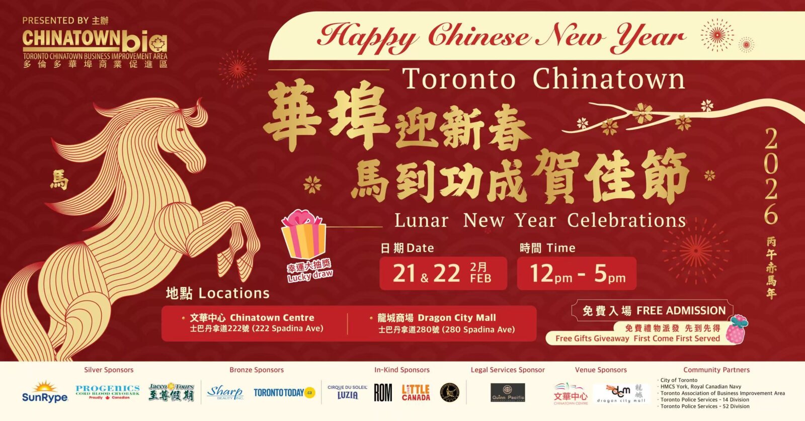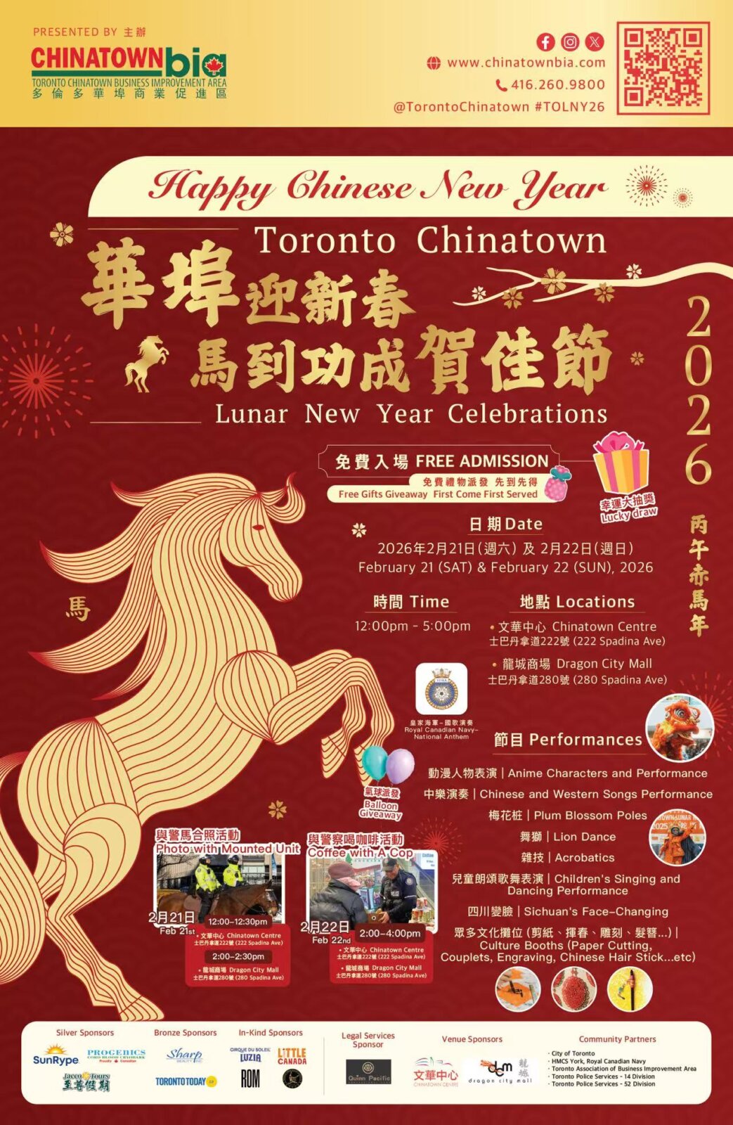 无论您是想寻找最纯正的年味,还是想深入了解多伦多的华人历史,这场新春盛典都是不容错过的选择。诚邀各界朋友齐聚华埠,在锣鼓喧天中,共迎金马腾跃的崭新一年!